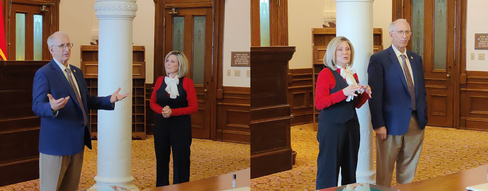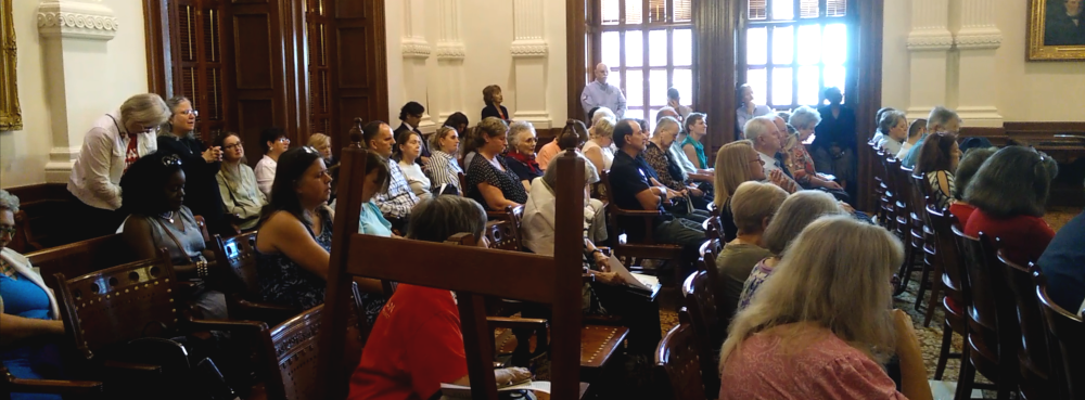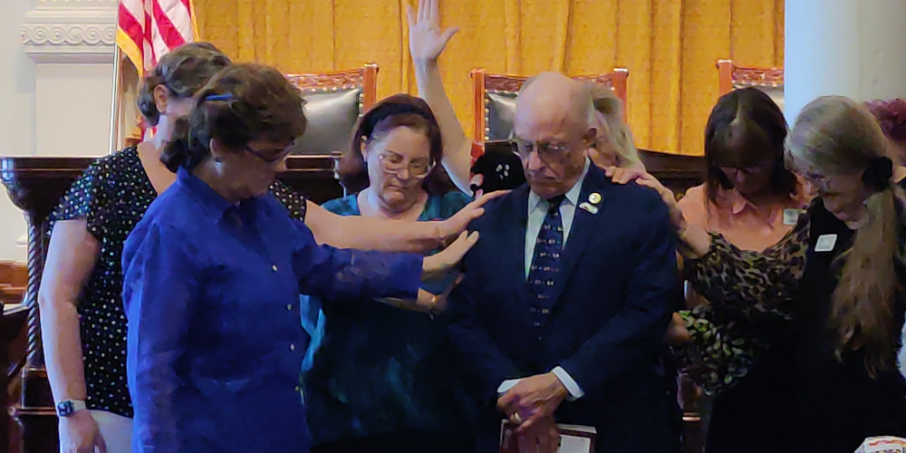 One attendee left the room to find any legislators to pray over and returned with Senator Bob Hall, the man who had reserved the Old Supreme Court Room for us.